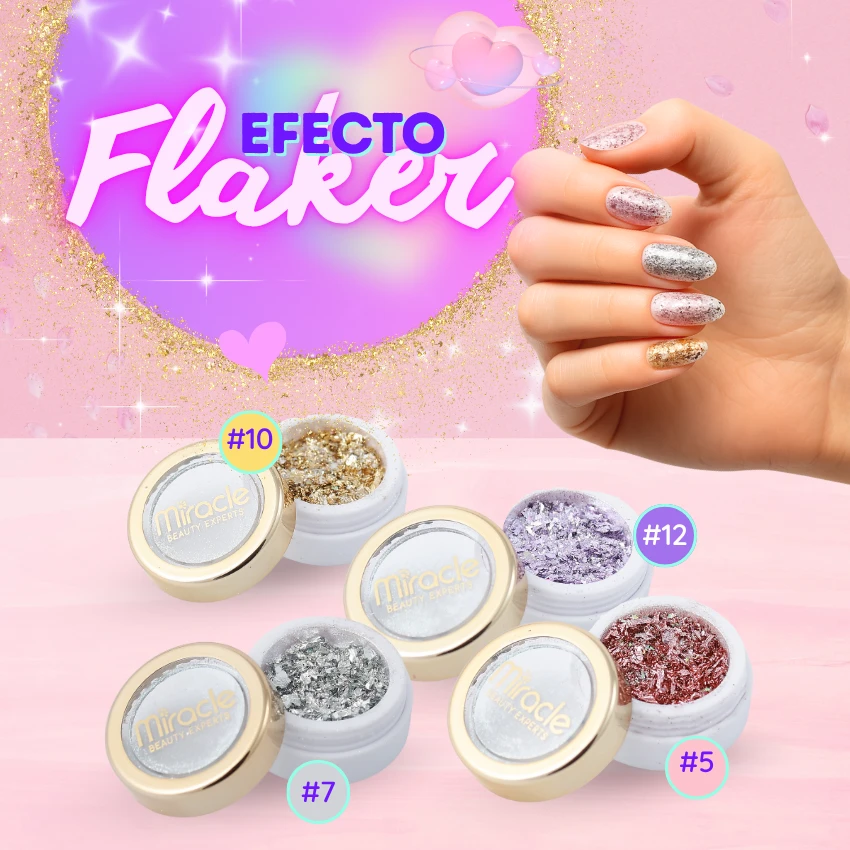 Hojuelas decorativas para nail art. Crea efectos iridiscentes y metálicos únicos. ¡Uñas con un acabado vanguardista y original!